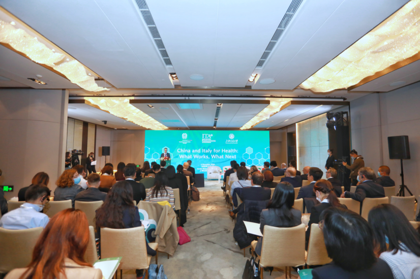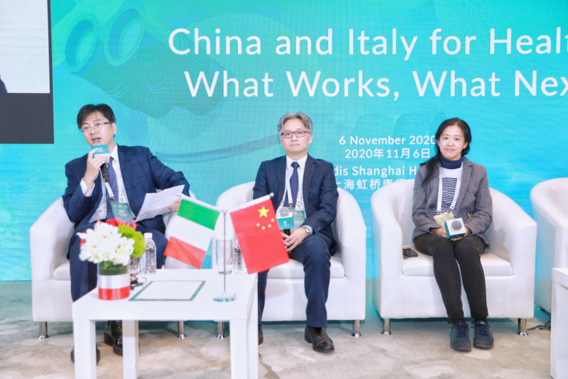 意大利国家卫生院Luca ROSI教授、上海交通大学国际与公共事务学院章晓懿教授、中国意大利商会副主席Valtero CANEPA先生,就“公共卫生与老年照护”分享了他们的观点;上海交通大学附属第一人民医院杨正峰教授、意大利DiaSorin集团Alberto DONATI先生、上海交通大学附属仁济医院王春鸣博士、意大利蒙迪诺(Mondino)基金会卫生总监Daniele BOSONE先生,则着重探讨了“中意健康护理合作机遇”。